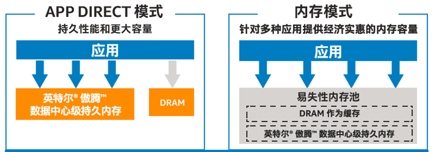 英特尔®傲腾™持久内存200系列具有两种工作模式:内存模式(MM)和App Direct 模式(AD)